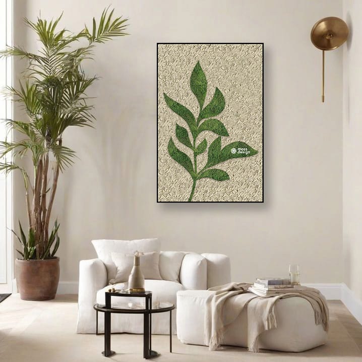 • If you like interiors decorated in a natural style with an emphasis on natural materials such as wood, rattan, various linen fabrics in neutral tones, the moss art VERDE will beautifully refresh and emphasize the natural character of such a space.